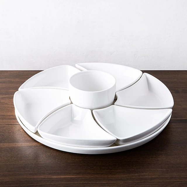 KSP Floria Porcelain Dishes with Tray - Set of 8 (White)