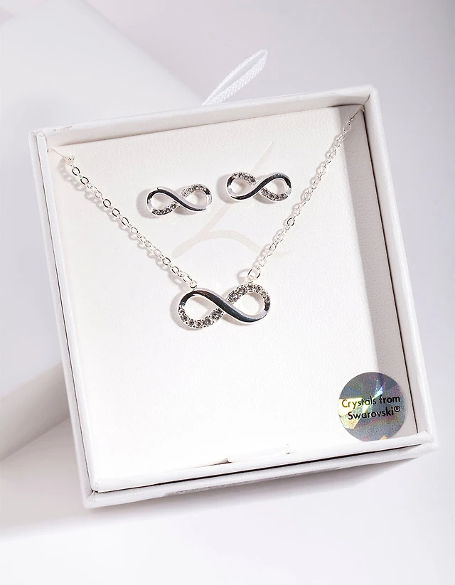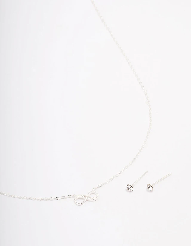 Silver Diamond Simulant Infinity Necklace & Earrings Set
