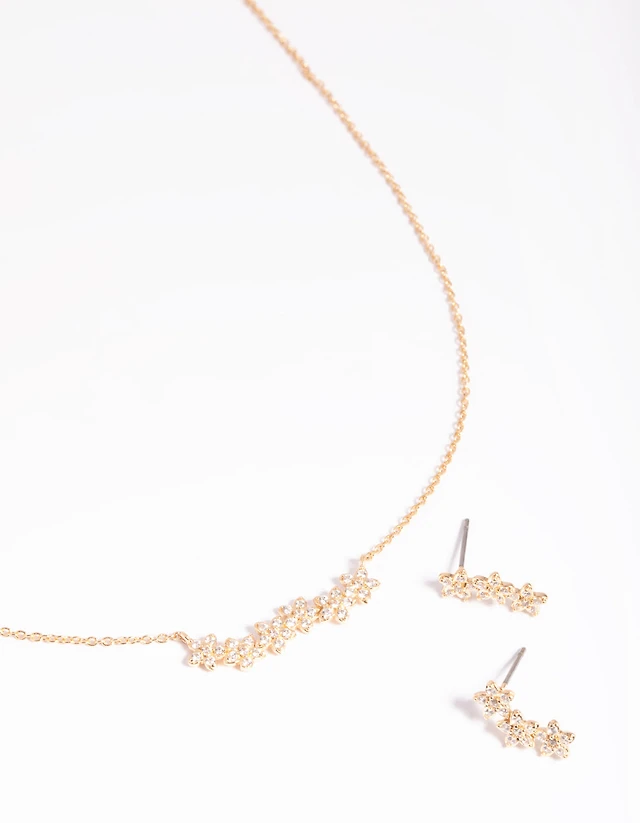 Gold Plated Cubic Zirconia Freshwater Pearl Drop Earrings & Necklace Set