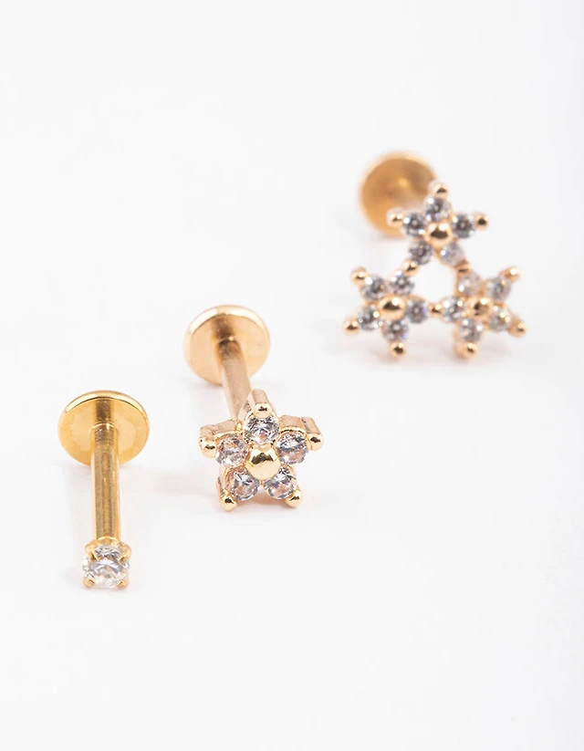 Gold Diamante Flower Butterfly Earrings 5-Pack