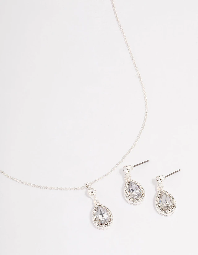 Silver Cubic Zirconia Tennis Necklace & Earring Set