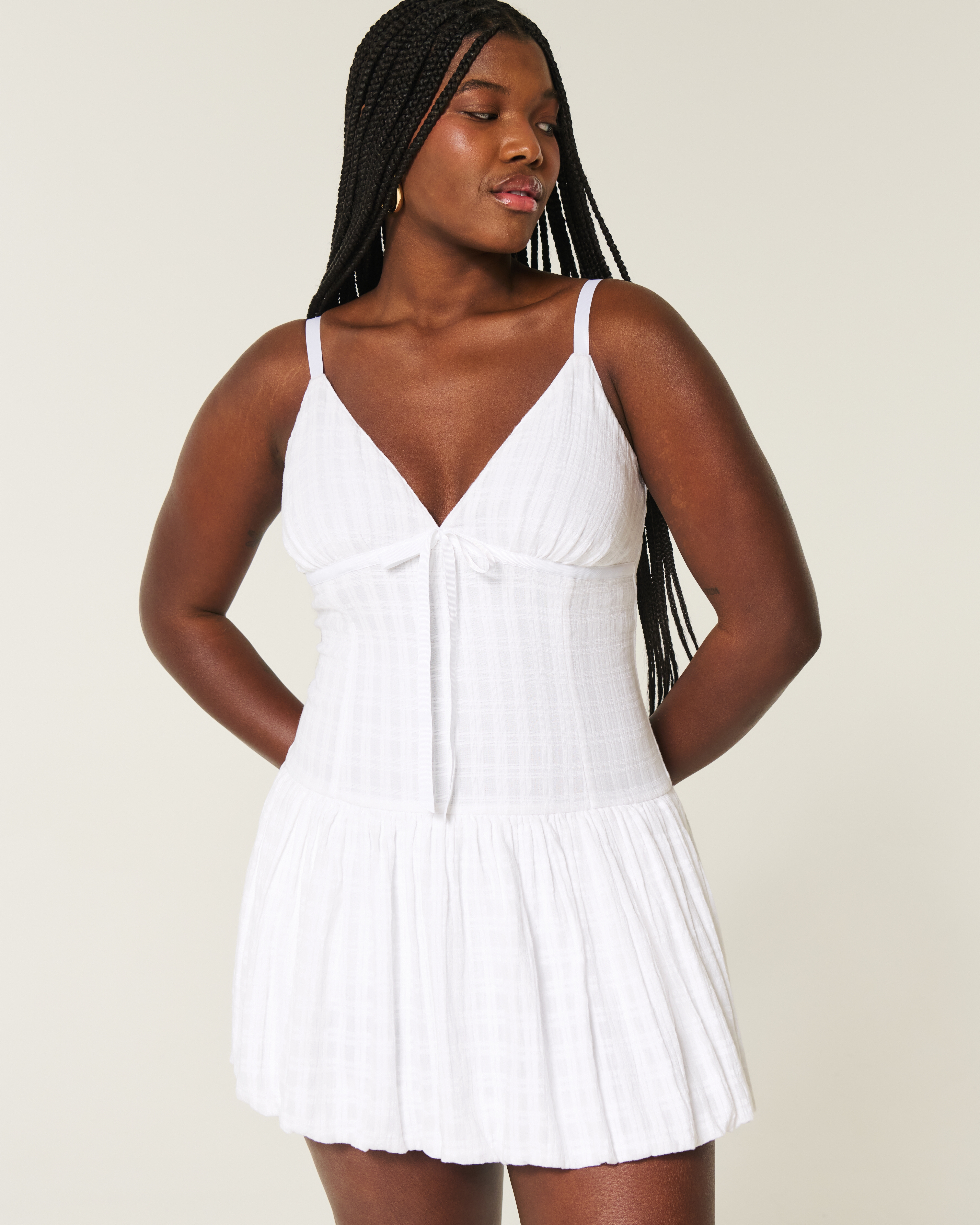 Printed Tiered Tie Back Mini Dress with Built-In Cups
