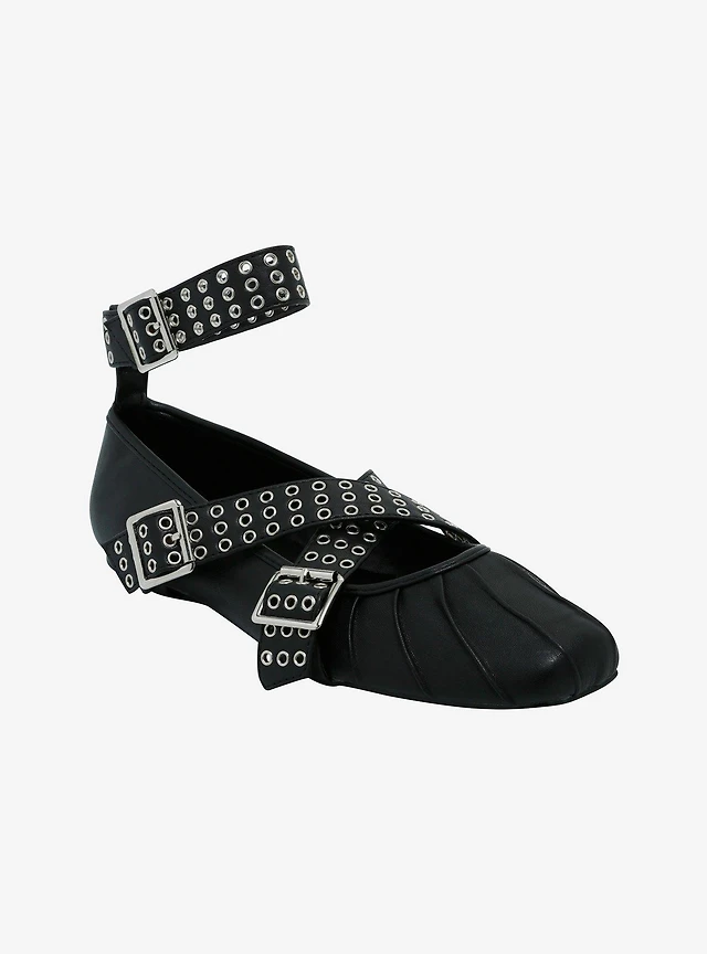 Azalea Wang Black Grommet Buckle Ballet Flats