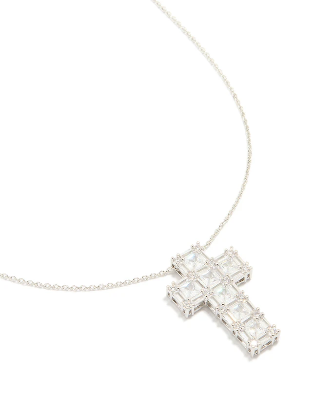 Sterling Silver Cubic Zirconia Pavé Cross Necklace