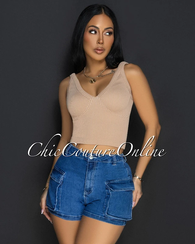 DICKIES V-NECK TANK TOP - CAPPUCCINO