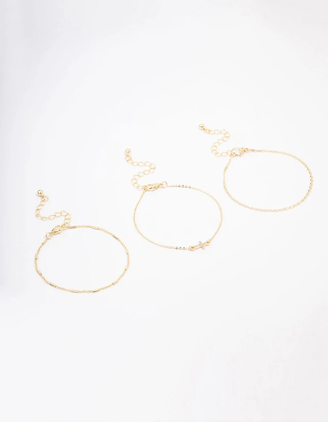 Gold Plated Cubic Zirconia & Chain Bracelets 2-Pack