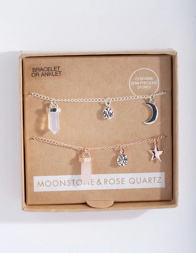 Moonstone & Rose Quartz Charm Bracelet Gift Box