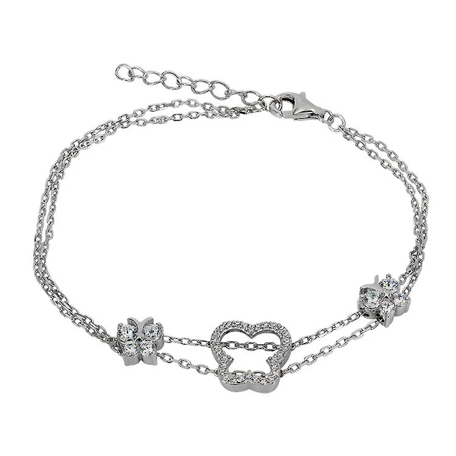 0.065 CT. T.W. Diamond Station Double Strand Bracelet in Sterling Silver - 7.5"
