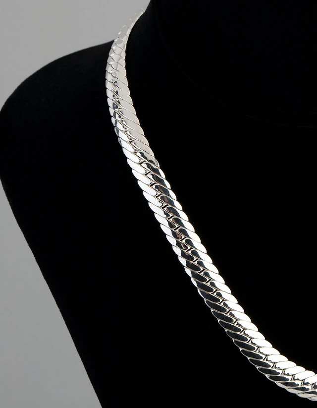 Silver Plated Brass Flat Curb Chain Necklace