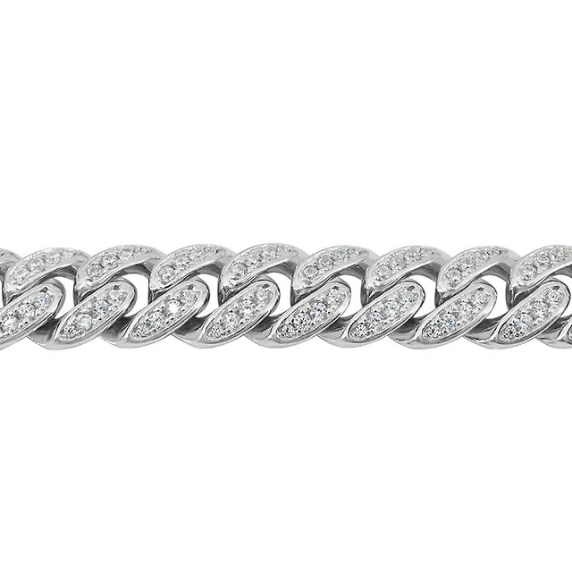 Sterling Silver With Rhodium, 15X7mm Infinity Mesh Bracelet With Cubic Zirconia