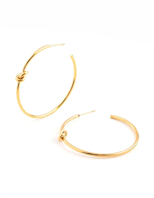 Waterproof Gold Plated Stainless Steel Classic Knotted Hoop Earrings