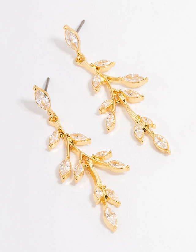 Gold Plated Cubic Zirconia Marquise Leaf Drop Earrings