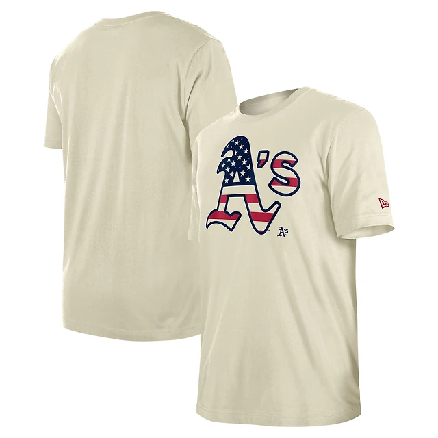 Men's New Era Cream Athletics Americana Flag Fill T-Shirt