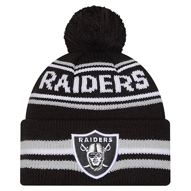 Youth New Era Black Las Vegas Raiders Striped Cuffed Knit Hat with Pom