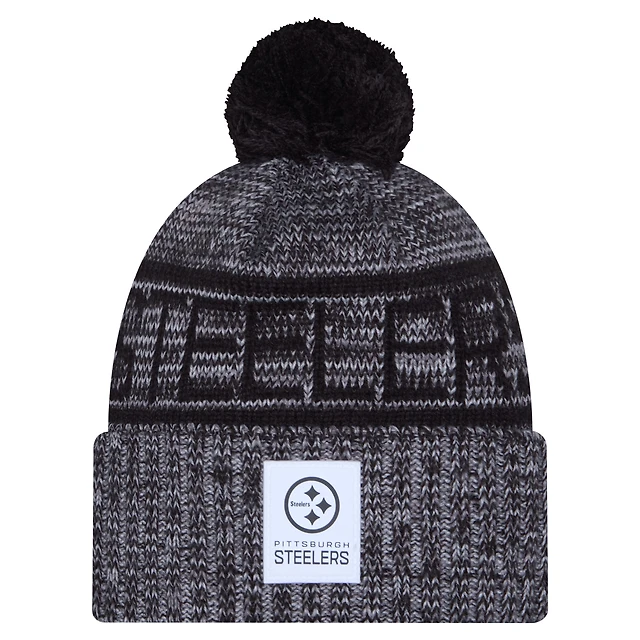 Men's New Era Black Pittsburgh Steelers 2023 Sideline Cuffed Knit Hat With Pom