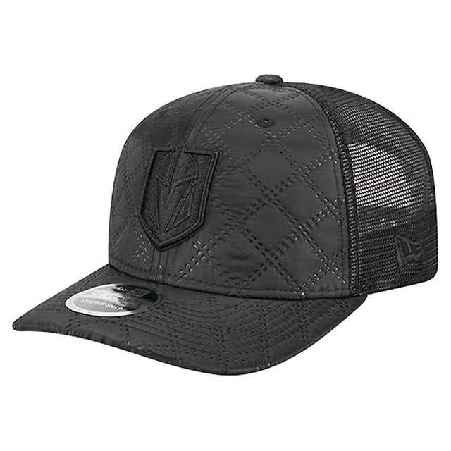 Men's New Era Black Vegas Golden Knights Quilted Nylon 9SEVENTY Adjustable Trucker Hat