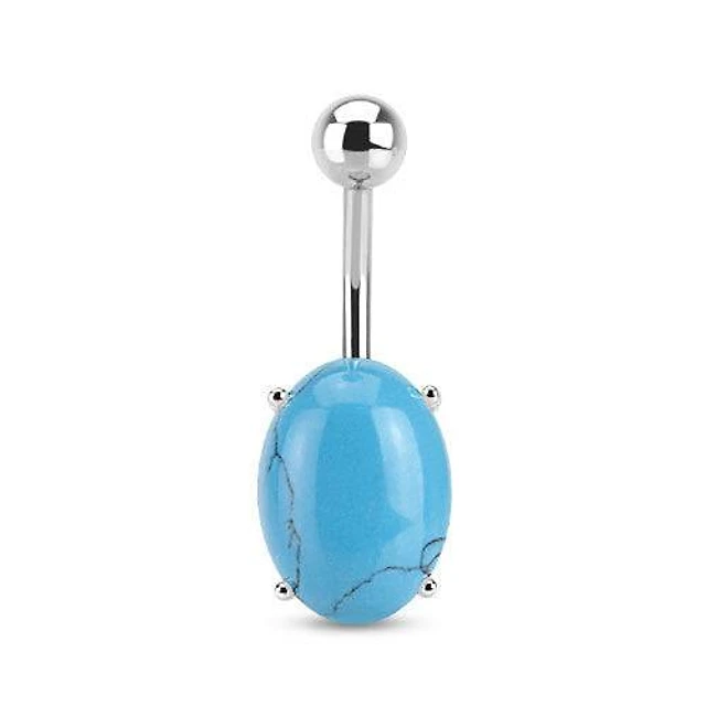 Surgical Steel Belly Button Navel Ring Bar with Turquoise Semi Precious Oval Stone