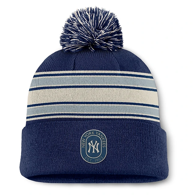 Men's Fanatics Navy New York Yankees Fundamental Patch Cuffed Knit Hat with Pom