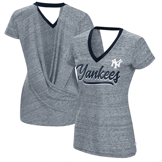 Women's Touch Navy New York Yankees Halftime Back Wrap Top V-Neck T-Shirt