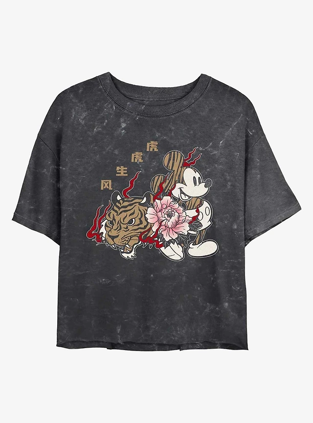 Disney Mickey Mouse New Year Mineral Wash Crop Girls T-Shirt