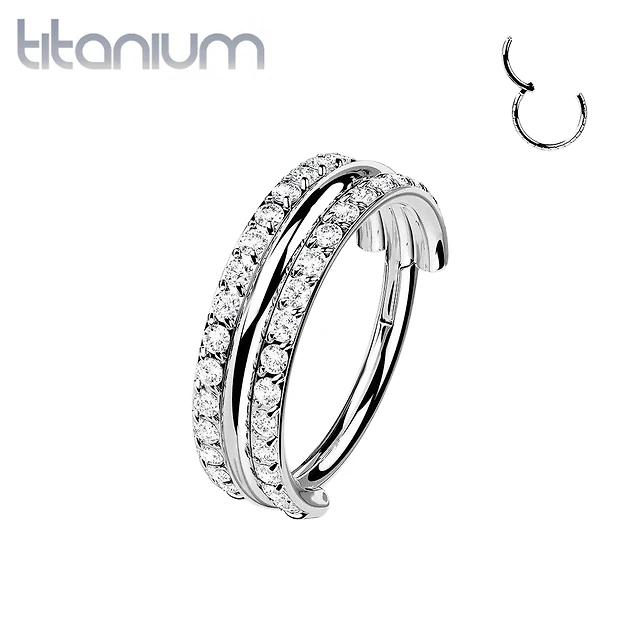 Implant Grade Titanium White CZ Double Line Plain Center Hinged Clicker Hoop