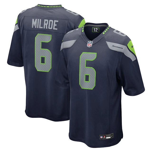 Men's Nike Jalen Milroe College Navy Seattle Seahawks 2025 NFL Draft Game Jersey