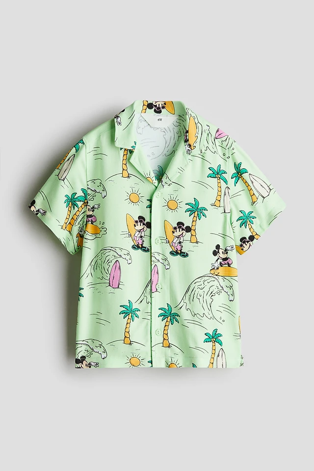 Recycled Fibers Chrysanthemum Print Lace Trim Button-down Shirt