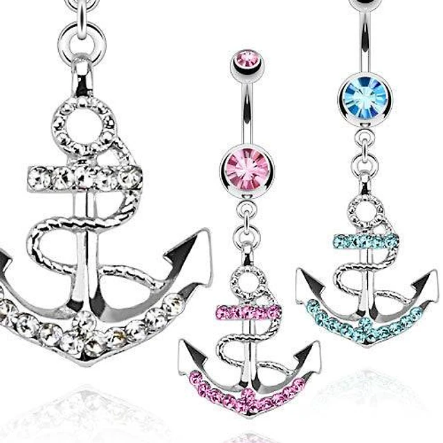 Ship Nautical Anchor CZ Gem Belly Button Navel Ring