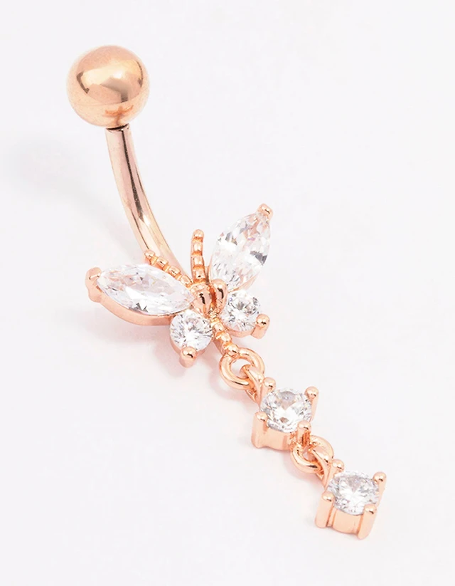 Gold Plated Surgical Steel Cubic Zirconia Butterfly Belly Ring
