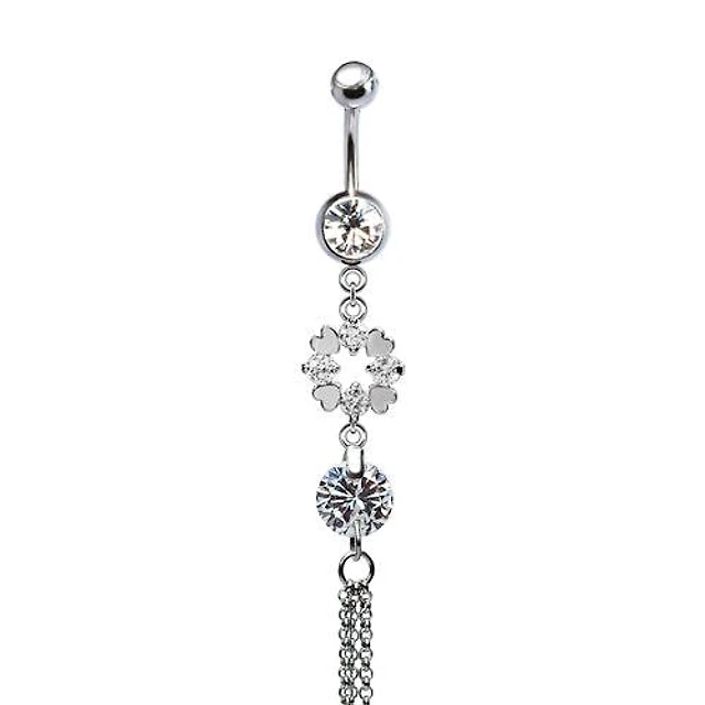 316L Surgical Steel CZ Gem Clover Dangle Belly Ring