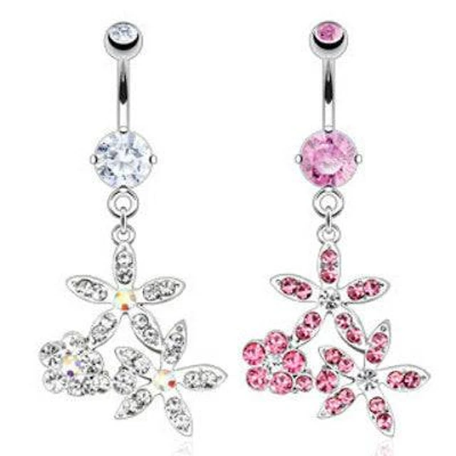 316L Surgical Steel Double Flower Tassel Dangle Belly Ring