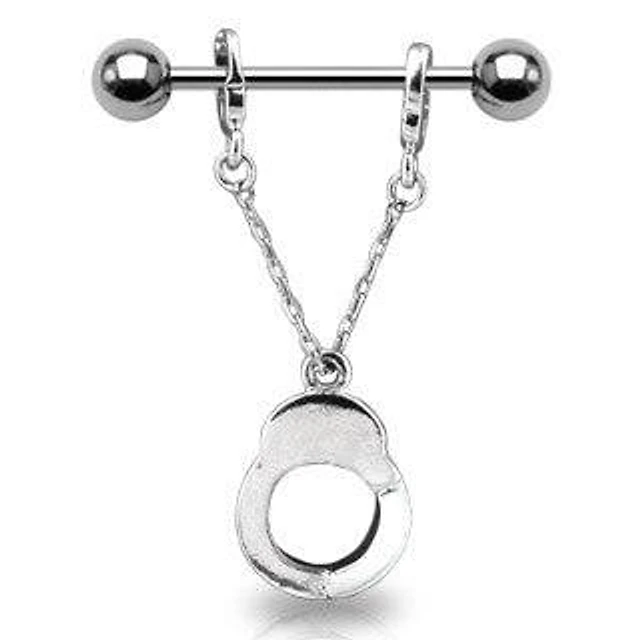 Surgical Steel Single Police Handcuff Dangle Nipple Ring Barbell