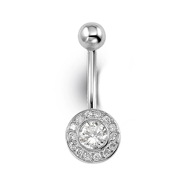 316L Surgical Steel Oval Pave White CZ Belly Ring