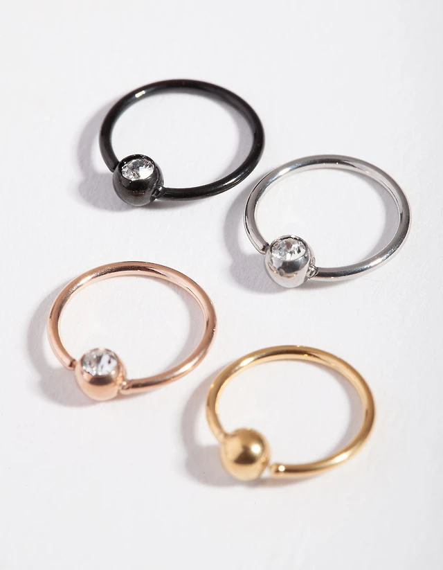 Mixed Coated Metal Ball Ring Nose Ring 6-Pack