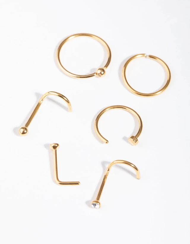 Gold Plated Surgical Steel Geometric Nose Ring 6-Pack