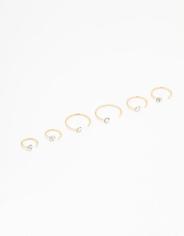 Gold Surgical Steel Mixed Diamante Nose Stud 6-Pack