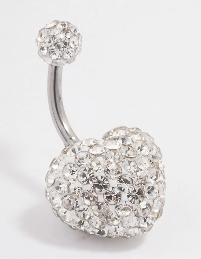 Surgical Steel Diamante Puffy Heart Belly Ring
