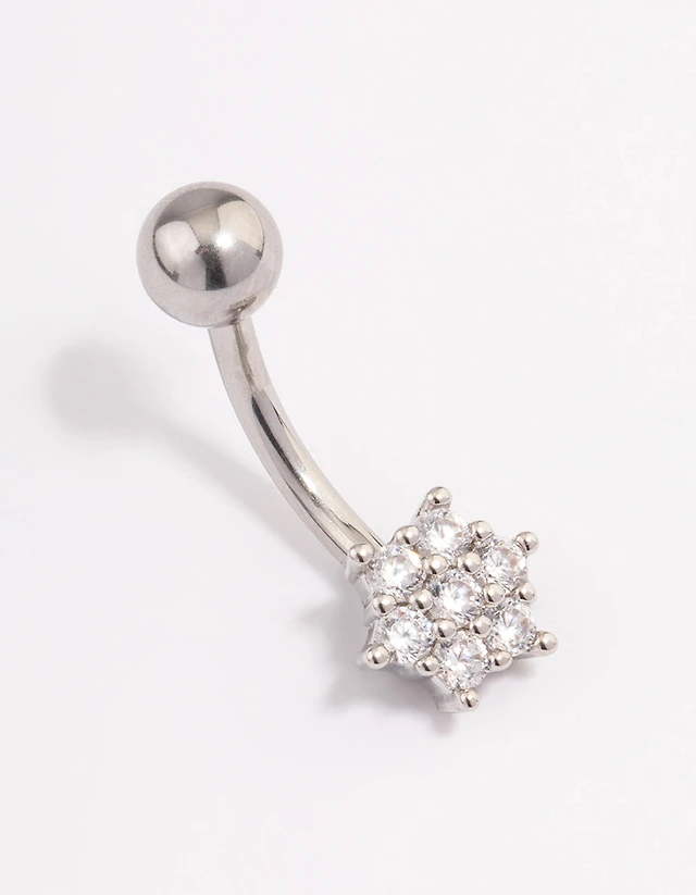 Surgical Steel Cubic Zirconia Flower Claw Belly Ring