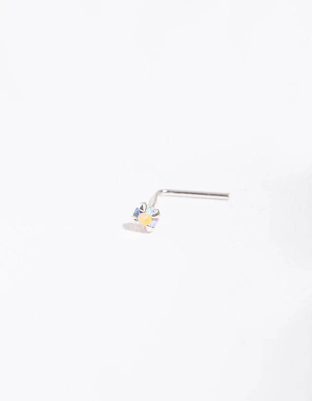 Implant Grade Titanium Aurora Borealis CZ L Shape Nose Stud