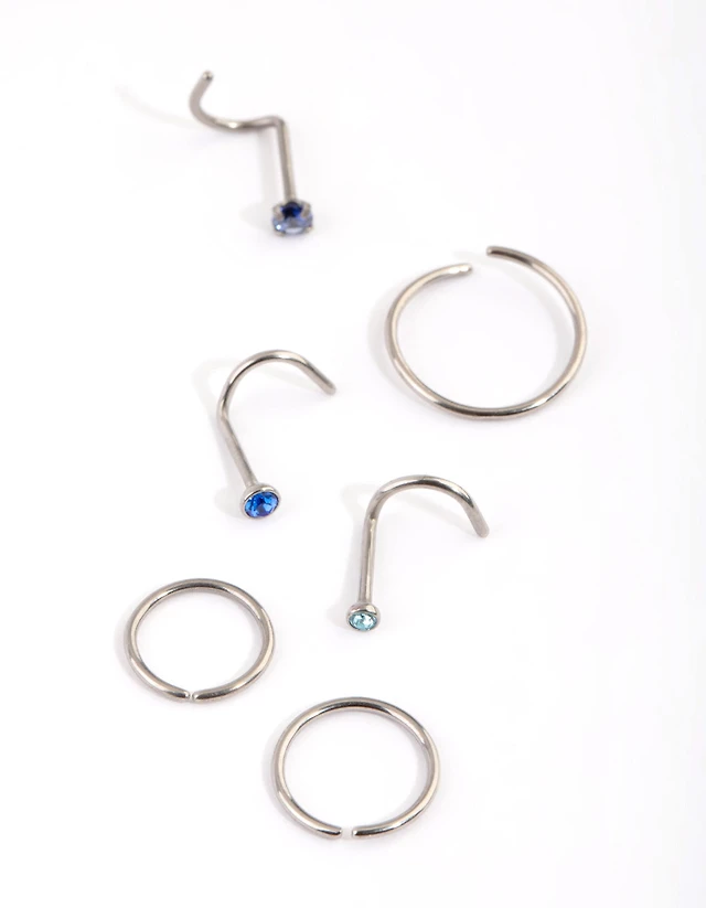 Mixed Surgical Steel Sapphire Nose Stud 6-Pack