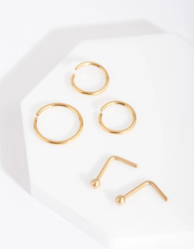 Gold Plated Surgical Steel Mixed Nose Piercing 4-Pack