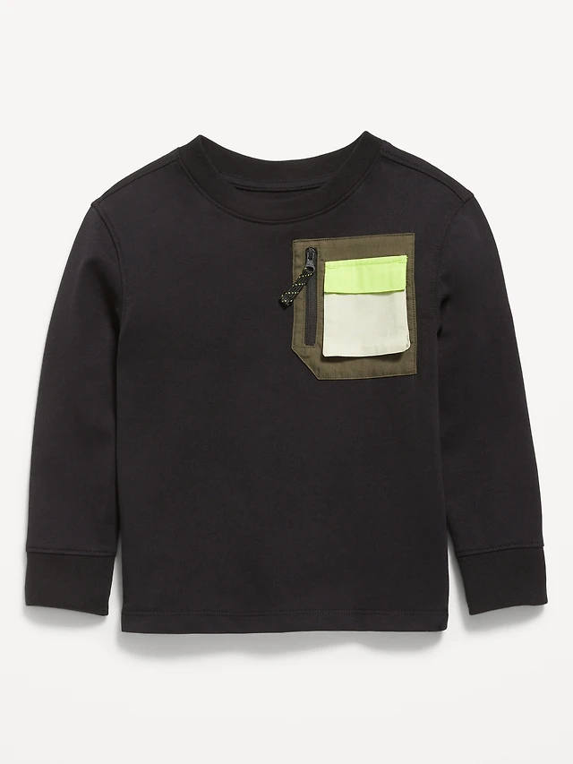 Oversized Long-Sleeve Utility Pocket T-Shirt for Toddler Boys