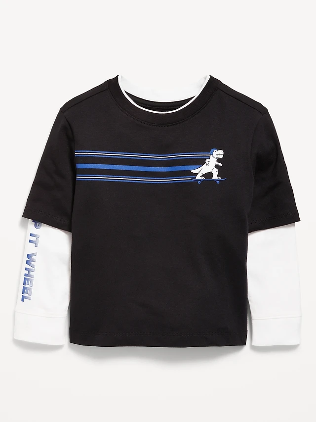 Oversized Long-Sleeve 2-In-1 T-Shirt for Toddler Boys
