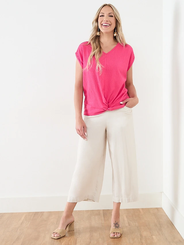 Tie Front Ruffle-Trim-Shoulder Blouse