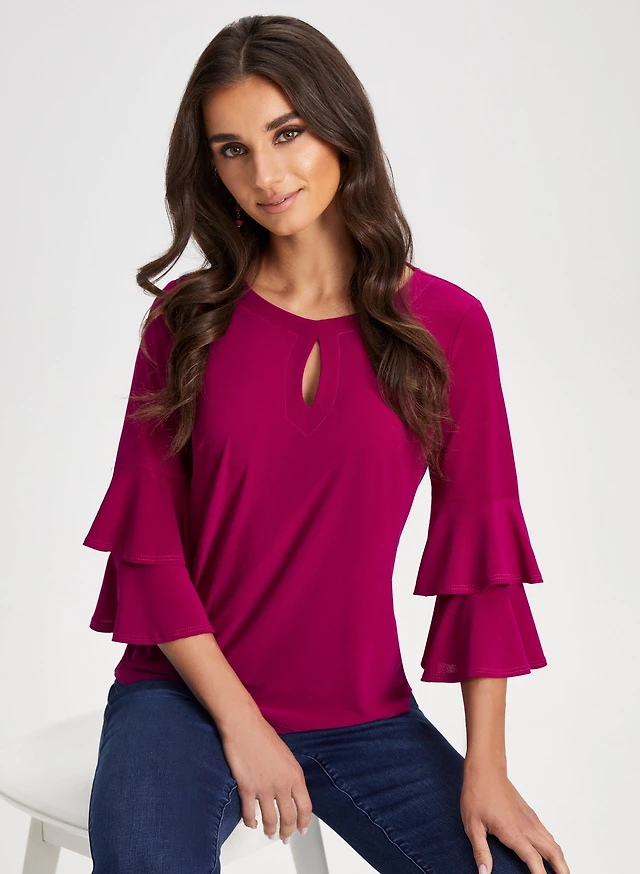 Beechers Brook Floral Zipper Shoulder Detail Blouse - White