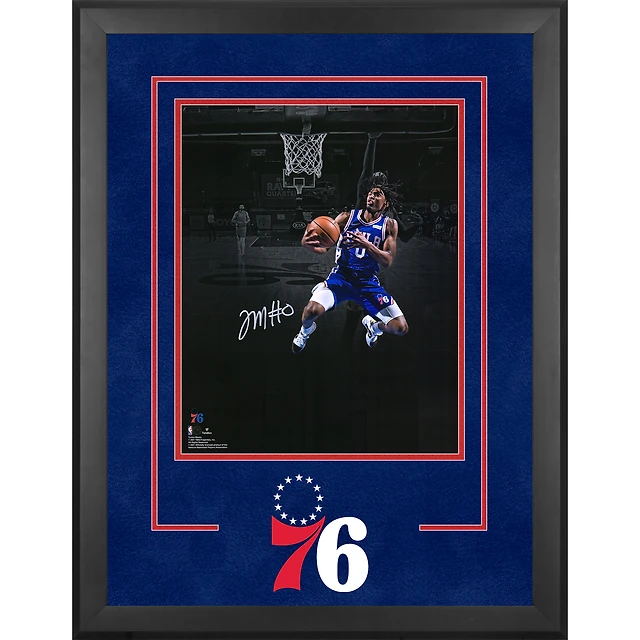 Tyrese Maxey Philadelphia 76ers Autographed Deluxe Framed 16" x 20" Layup In Royal Jersey Spotlight Photograph