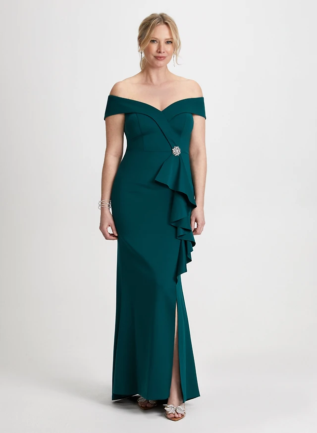 BA Nites - Off-Shoulder Waterfall Ruffle Dress