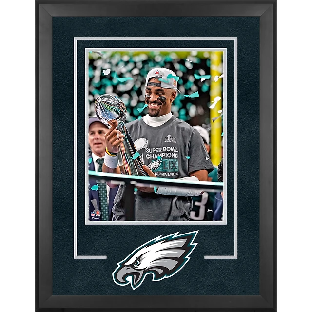 Jalen Hurts Philadelphia Eagles Super Bowl LIX Champions Deluxe Framed 16" x 20" Lombardi Trophy Presentation Photograph