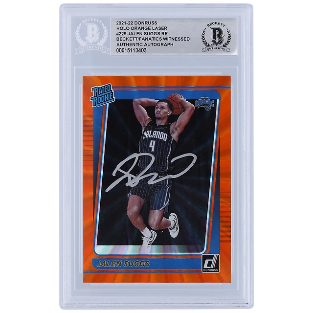 Jalen Suggs Orlando Magic Autographed 2021-22 Panini NBA Hoops #210 Beckett Fanatics Witnessed Authenticated Rookie Card with "Go Magic" Inscription