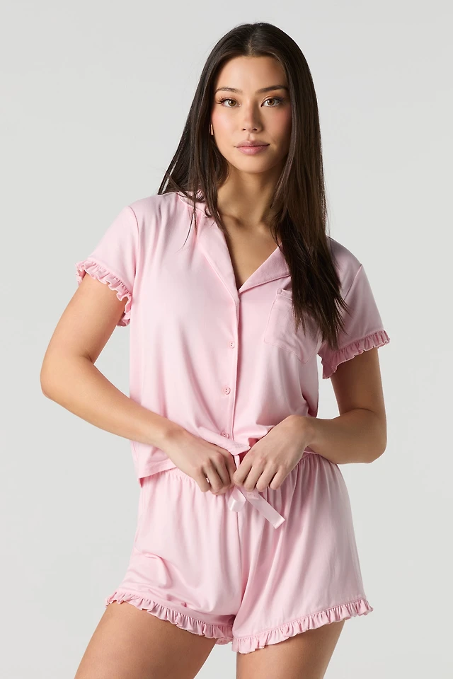 Ensemble-pyjama 2 pièces haut boutonné à volant et short